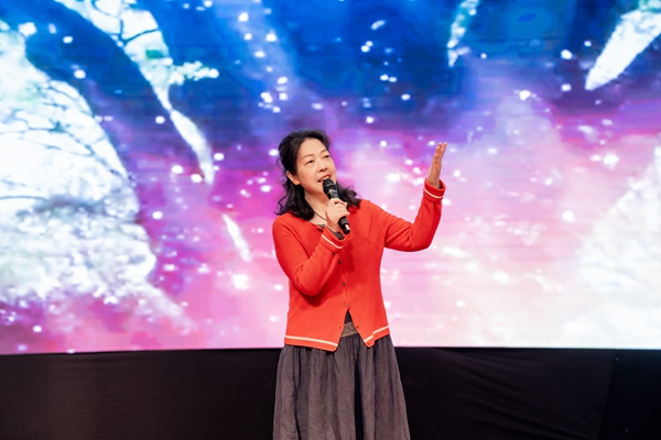 第一篇章在苏向红老师《倾诉:献给我两重世界的家园》的娓娓道来中展开。校友康泾先生的《短短几天,一块石头变成花朵》和《红木书橱》向观众展现了诗歌的多种可能。林颖同学朗诵的《白鹭之歌》,充分表现了自然的力量。戴语涛、殷玥两位同学则为我们带来了晓弦的《灶间生活》,让人感知到了一份来自灶间的温暖与美好,品味到了那份属于家的独特味道。毛若涵同学的扬琴独奏《落花夜》让现场观众感受到了“大珠小珠落玉盘”的清脆悠扬。