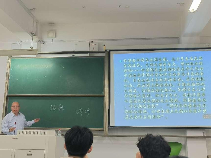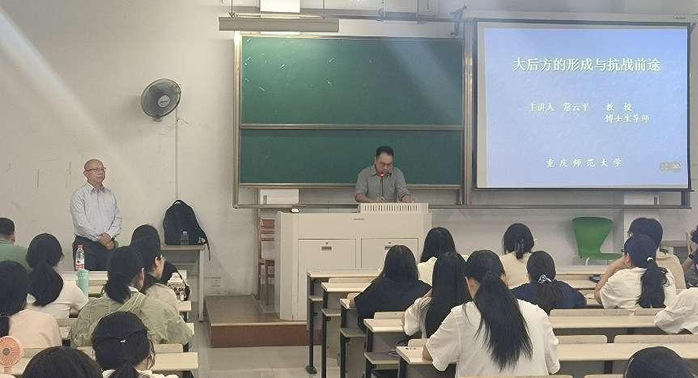 最后,常云平教授从整体出发,分享了对抗战大后方的认识,强调大后方的积极性和重要性,指出其中西南地区人民群众的无私奉献,为抗战胜利做出的重大贡献。在交流讨论环节,同学针对抗战对大后方人民生活影响等问题,与常云平教授进行交流,常教授一一耐心解答。