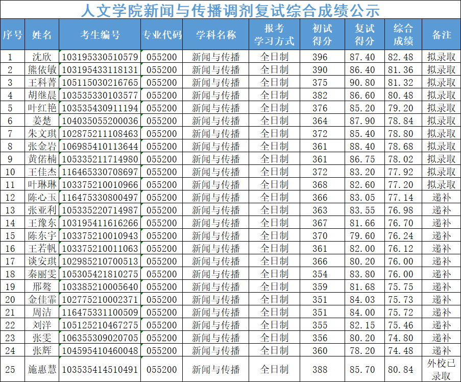 优米app怎么下载软件人文学院2025年新闻与传播专业硕士调剂复试综合成绩公示