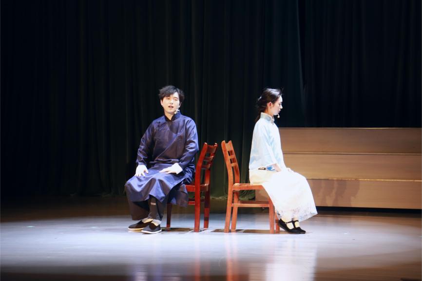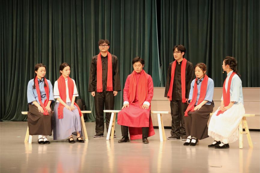 此次演出是人文学院对红色经典的致敬与传承,也是启明剧社全体演职人员数月来潜心打磨的心血结晶。在表演呈现上,演员们以扎实的台词功底和细腻的情感表达,精准刻画了剧中人物的复杂性格与内心蜕变。张方嘉饰演的林道静,从初遇挫折的迷茫少女到坚定信仰的革命战士,眼神从青涩懵懂逐渐焕发出坚毅光芒,将角色在时代浪潮中的成长轨迹演绎得淋漓尽致;徐导博塑造的卢嘉川,以慷慨激昂的演讲和果敢无畏的行动,生动展现了革命青年的理想主义情怀与牺牲精神......舞台上,林道静冒险张贴宣传标语、爱国青年在狱中高喊革命口号等经典场景,让观众深深动容。