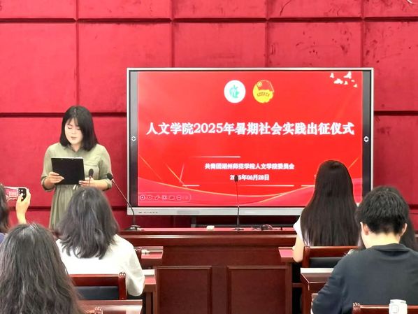 为扎实推进暑期社会实践工作,确保实践活动安全、有序、高质量开展,6月28日上午,人文学院在13幢509教室举行2025年暑期社会实践出征仪式。仪式由王雅卓主持,人文学院党委副书记谭珊、辅导员吴安迪、各实践团代表等共百余名师生出席。