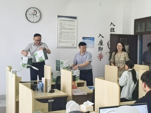 7月8日,人文学院开展暑期留校学生慰问活动。院长潘明福、党委书记程龙、党委副书记谭珊及辅导员一行深入考研教室和学生宿舍,为留校备战考研及参与社会实践的学子们送去暖心关怀。