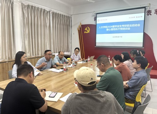 9月17日下午,人文学院在13-305会议室召开2026届毕业生考研就业启动会暨心理危机干预培训会。院长潘明福、党委书记程龙、毕业班班主任和辅导员参加会议。会议由党委副书记谭珊主持。