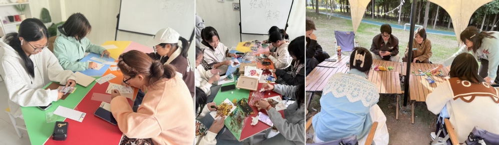 系列活动包含三项内容,在“心灵港湾”开展的拼贴诗创作活动,让同学们在文字重组中释放压力;永生花束DIY活动,引导参与者在手作中沉淀心情;以及在户外草坪举办的野餐团辅活动,通过趣味心理游戏促进交流、疏解情绪。