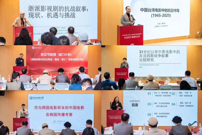 在大会主旨报告和分论坛环节,来自多所高校与科研机构的专家学者,围绕抗战电影叙事传统与精神谱系、中国电影的跨国传播与文化融通、现实题材影视作品中的青年成长与家国情怀以及新技术语境下的电影创新等议题作了报告与交流,从电影史、战争记忆、跨国传播、文明互鉴等多个维度深入阐释中国电影中的抗战精神及其当代转换路径。与会学者普遍认为,中国电影在120年历程中,已在“救亡图存—民族复兴—人类命运共同体”的叙事谱系中沉淀出独特的精神资源,值得在新时代加以创造性转化和创新性表达。