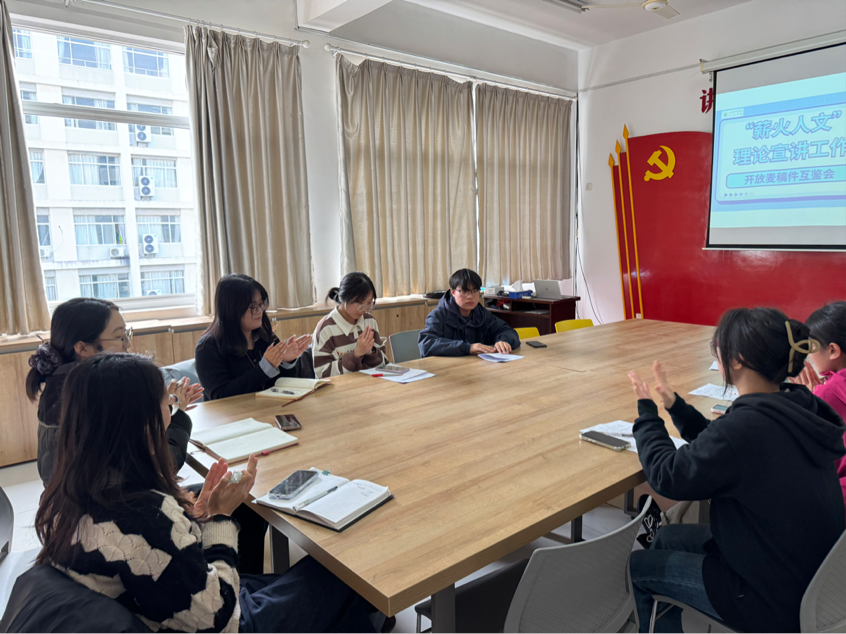 2025年12月5日,开放麦稿件互鉴会在13幢305室举行,本次活动由“思享家”辅导员工作室、“薪火人文”理论宣讲工作室主办,旨在打磨宣讲内容,为后续深入社区宣讲奠定扎实基础。人文学院党委副书记谭珊、辅导员吴安迪及多位优秀大学生宣讲员共同参与活动。