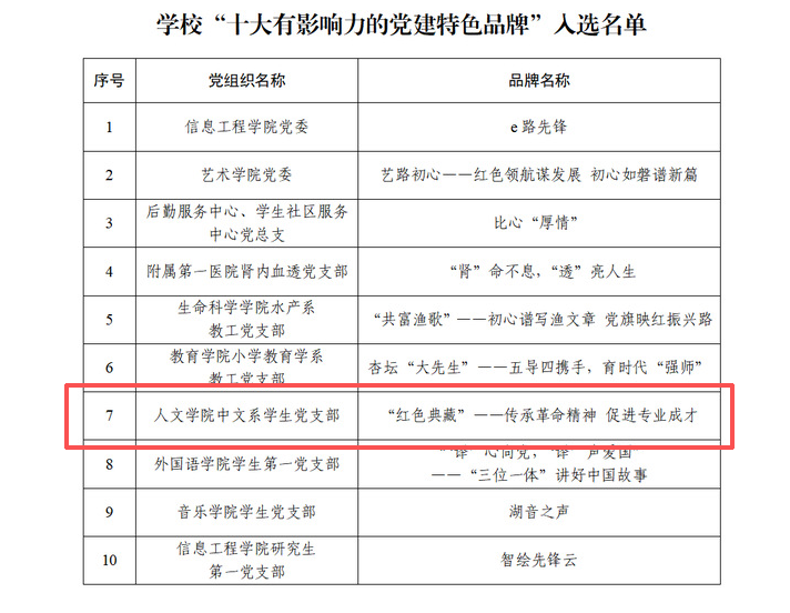 中文系学生党支部党建品牌项目入选校“十大有影响力的党建品牌”