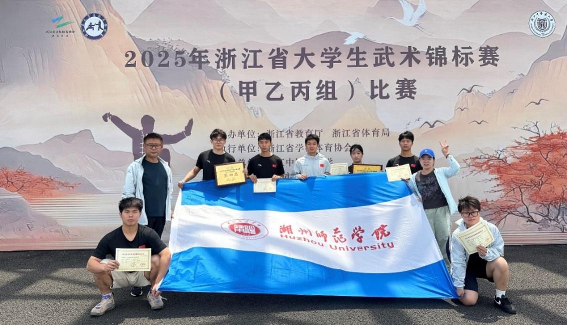 2025年5月24日,浙江省大学生武术锦标赛在嘉兴市平湖体育中心落幕。我校武术队在领队耿家先及教练崔秉珍、郑少谊的带领下,经过4天激烈角逐,取得男子丙组团体第四名、女子丙组团体第六名,甲组冯正轩获刀术第八名。