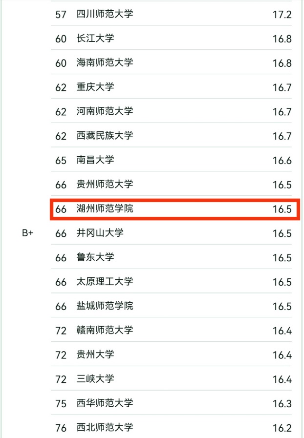 近日,“2025软科中国大学专业排名”发布。体育教育专业在全国共有386所高校开设,本次发布193所高校。我院体育教育专业位列B+,排名第66位,较2023年提升4个位次,排名再创新高。体育教育专业在软科中国大学专业排名的持续上升,充分彰显我院本科专业内涵建设不断提升的办学成效,体现了学院事业发展稳中有进的良好势头,进一步汇聚了全院师生实干争先的磅礴力量,为创建高水平“湖州师范大学”奠定了坚实基础。