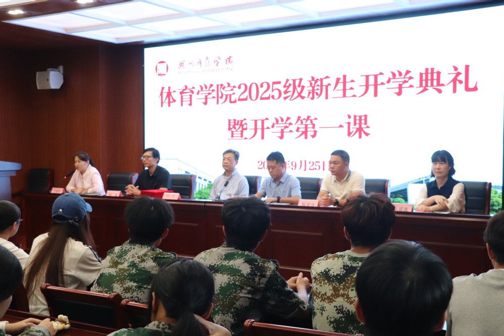 2025年9月25日下午,体育学院2025级新生开学典礼暨新生始业教育在二楼会议室召开。参与此次活动的领导班子成员有:名誉院长仇军,党委书记章东飞,院长刘炼,副院长耿家先、孙盛燕,党委副书记刁瑞雪。教师代表、辅导员、新生班班主任以及全体新生共同参与。