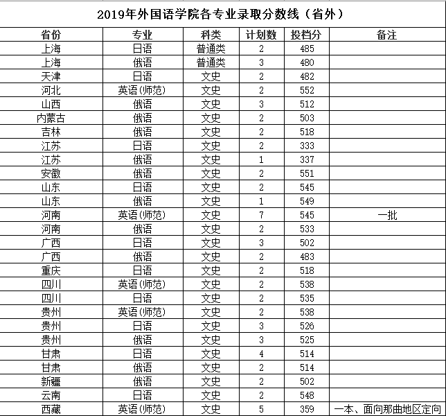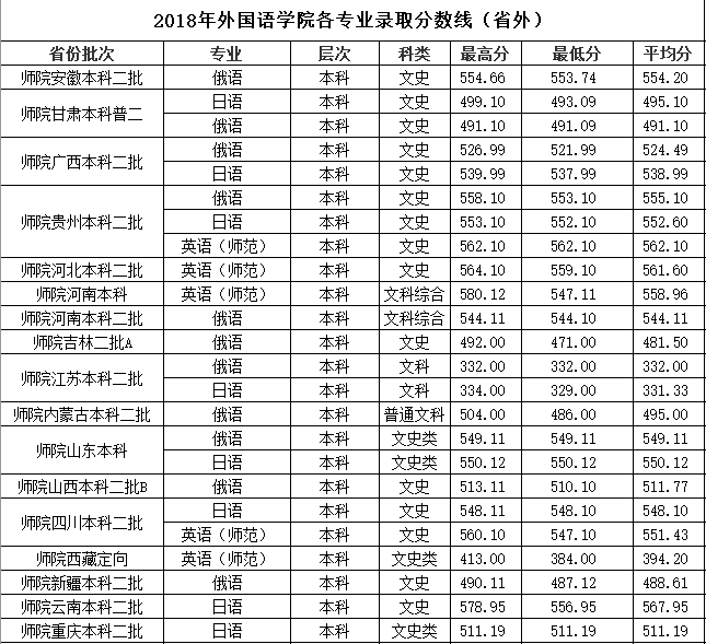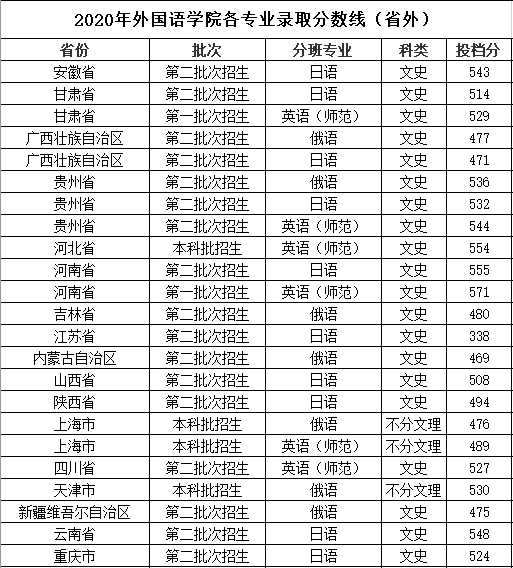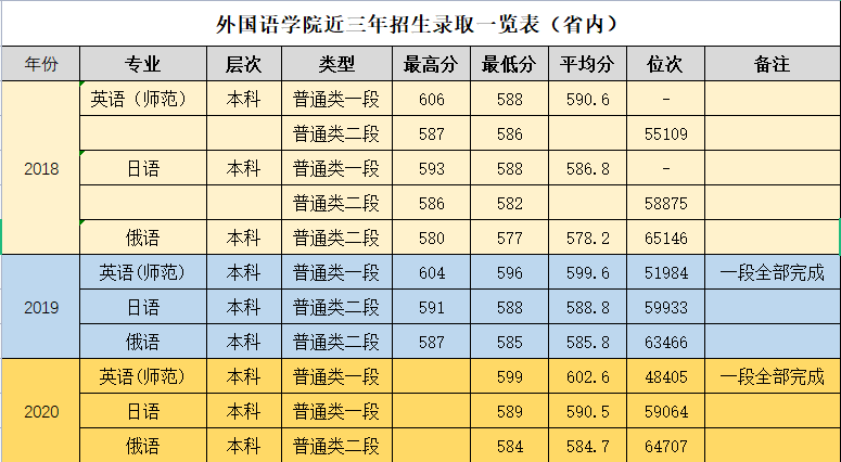 外国语学院近三年各专业录取分数线(2018年-2020年)