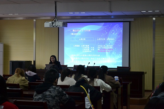 李新霞援引现实生活中的案例简要介绍了正常心理和不正常心理、心理健康和心理不健康的概念区分。其次重点介绍了大学生常见心理问题-抑郁症的概念及识别标准。她强调心理委员和寝室心理互助员应密切关注班级和寝室同学,“听其言,察其行”,若发现异常行为要及时反馈到学院以避免造成不可挽回的后果,并鼓励在座学生动员同学们随时去“阳光小屋”4幢308进行心理咨询。最后,李新霞提醒在座同学做到三点,一是不要轻易给自己和他人贴标签,二是要掌握基本的心理卫生知识,三是不要漠视包庇,有问题一定要及时与班主任及学院沟通。