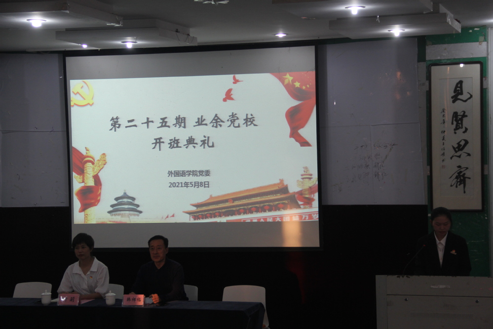 5月8日,外国语学院第二十五期分党校党课培训班开班典礼暨党课第一讲在7-203举行,学院党委书记、分党校校长韩祥临、党委副书记、分党校副校长叶莉出席开班典礼,学院党建组织员、党校班主任以及全体学员参加了典礼。
