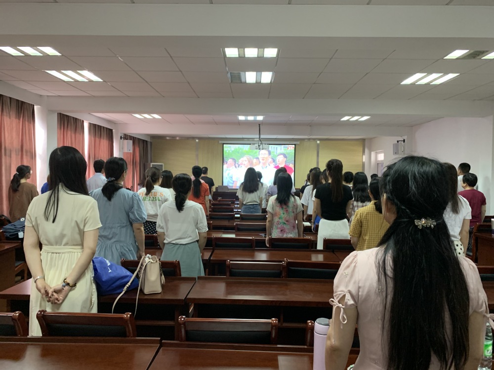 7月1日8:00,学院党委组织全院师生在4幢217报告厅集中收听收看庆祝中国共产党成立100周年大会直播实况并开展交流研讨活动。