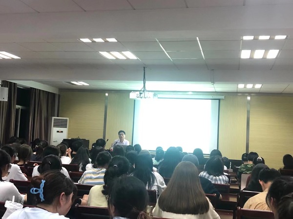 张永平老师从日本文化入手,他紧跟时事,用幽默风趣的话语向新生介绍了他对日本的印象,将日本文化的内涵融入到切身的一些经历中,让新生燃起了对日语学习的强烈兴趣。张老师重点讲解了一些日语的基础知识,介绍了日语专业的就业方向,他还向新生们详细介绍了日语专业的老师们,让同学们对日语学习充满期待。
