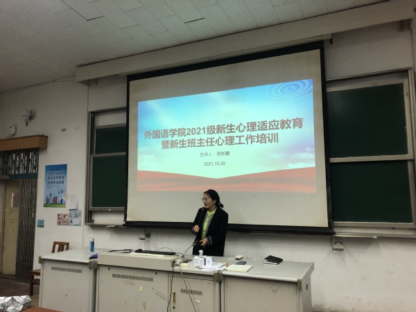 10月20日下午,我院在1-115举办新生心理健康教育暨新生班主任心理工作培训讲座,国家三级心理咨询师,曾任外国语学院心理辅导员的李新霞老师应邀为师生讲授心理健康知识。