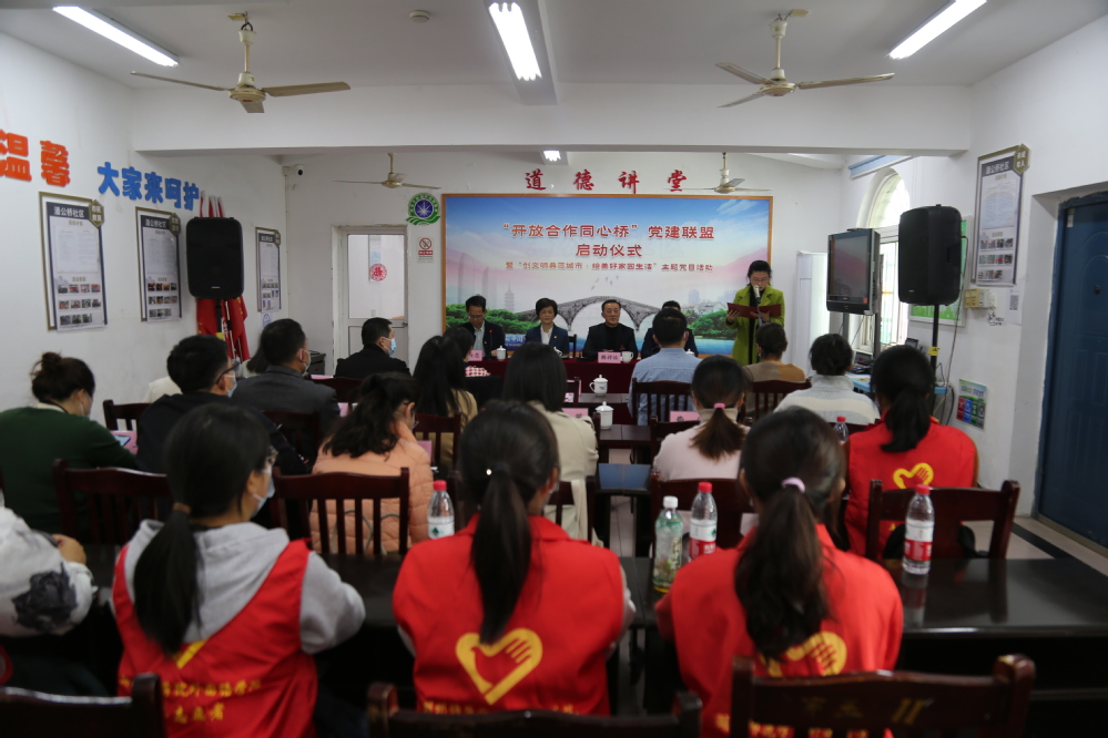 11月15日下午,学院党委同市外事办、龙泉街道潘公桥社区、环渚街道玉堂桥社区联合举行“开放合作同心桥”党建联盟启动仪式,我院一行人在党委书记韩祥临的带领下,赴龙泉街道潘公桥社区参加启动仪式,副院长张永平、党委副书记邹鑫以及学生志愿者参加了此次活动。