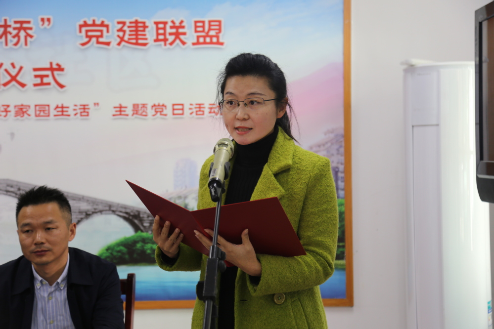 ▲ 我院党委副书记邹鑫宣读《开放合作同心桥党建联盟契约》
