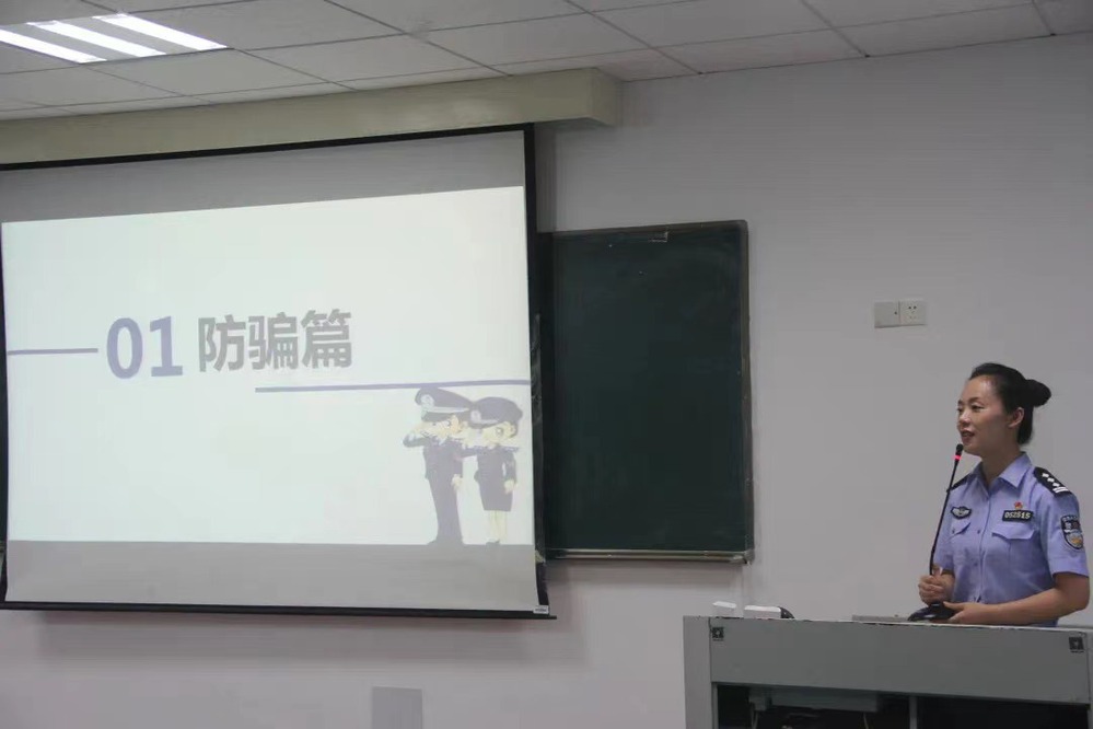 杨美怡警官首先介绍了防诈的重要性,她强调了两个防诈重点:不接境外电话、不登不明网站。她以真实案例为警示,介绍了常见的诈骗类型。还以身边同学经常发生的事例入手,提醒大家遇到类似事情如何处理。随后,杨警官还强调了学习和生活中要注意的安全隐患,教育同学们远离危险,珍爱生命。
