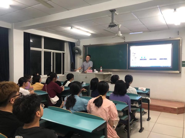 张永平老师从日本文化入手,他紧跟时事,用幽默风趣的话语向新生介绍了他对日本的印象,将日本文化的内涵融入到切身的一些经历中,让新生燃起了对日语学习的强烈兴趣。张老师重点讲解了一些日语的基础知识,介绍了日语专业的就业方向,他还向新生们详细介绍了日语专业的老师们,让同学们对日语学习充满期待。