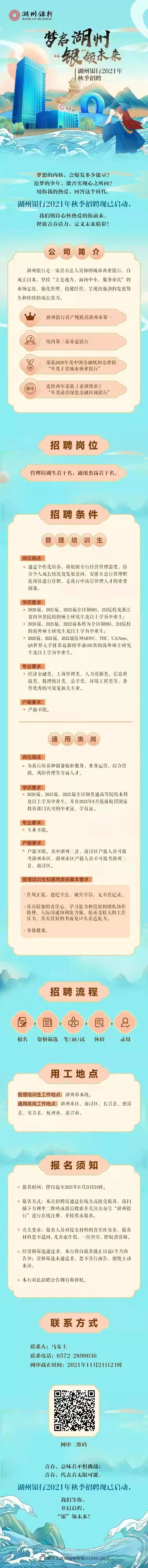 湖州银行2021年秋季招聘公告