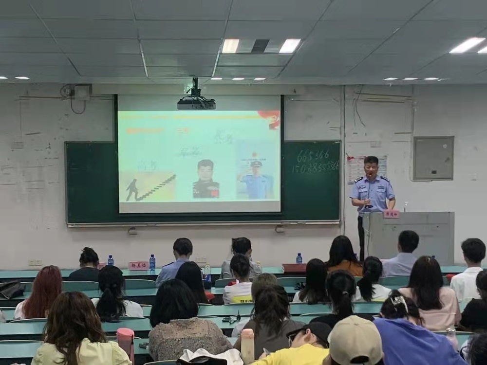 最后,“全国公安系统二级英模”陈建如警官为同学们做了专题讲座。陈警官以自身成长故事为例,教导同学们做有担当的实践者和心底无私的奉献者。他还结合案例进行了安全教育,提醒同学们时刻绷紧安全之弦,加强防范。