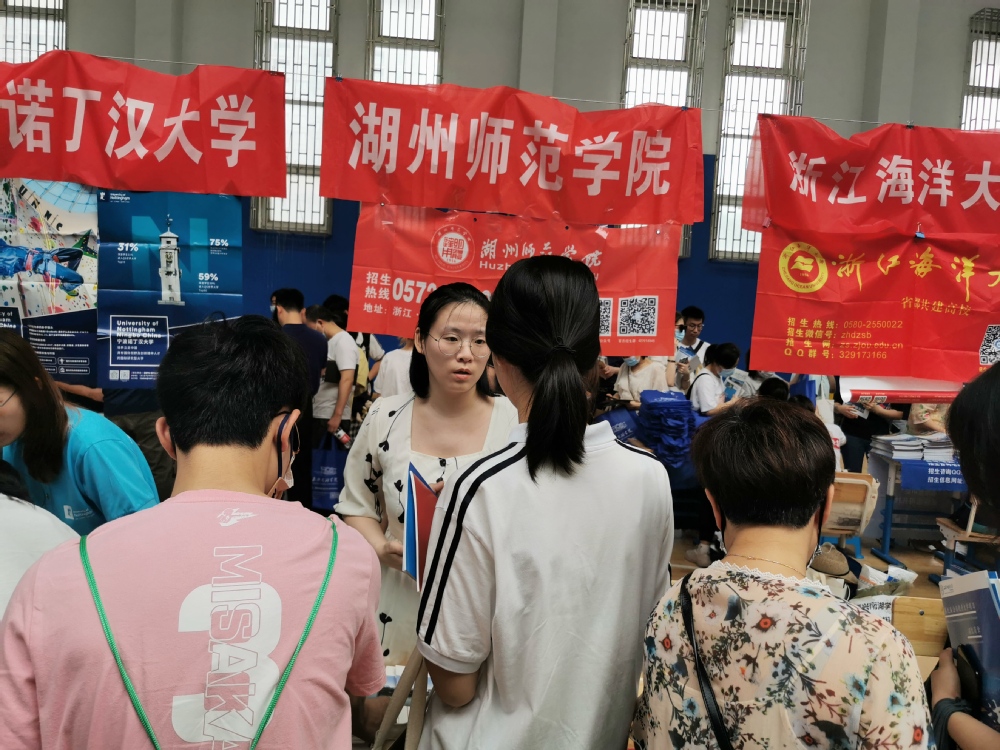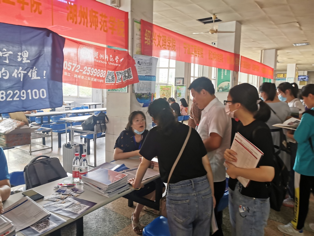 招生宣传工作组先后走访了源清中学、建德新安江中学、萧山区第五高级中学、萧山区第十一高级中学、严州中学五所高中。在咨询会活动现场,整个宣传路线发放招生宣传材料近百余份,前来展位索取资料和咨询的考生及家长络绎不绝。通过与家长和考生的交流,我们了解到,考生和家长已经通过网络等途径对我们学校进行了详细的了解,他们最关心的问题是今年的录取分数预估问题,工作组老师们对学生和家长提出的各种问题进行了耐心细致的解答。