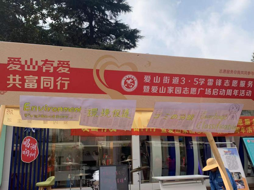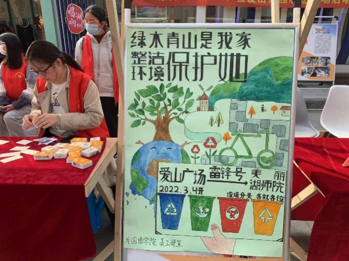 2022年3月4日,6名外国语学院的志愿者来到湖州市爱山广场,为当地的居民宣讲有关雷锋精神以及垃圾分类的知识。