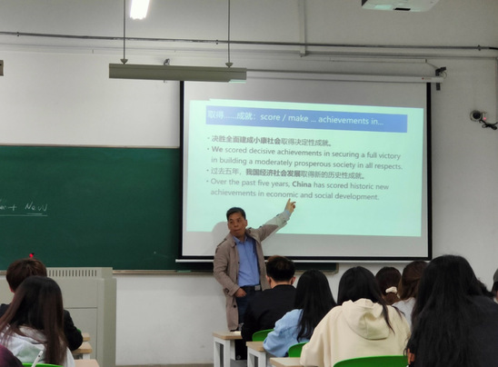 最后,段教授针对直译和意译进行了深入的讲解。他指出在翻译过程中,我们可以根据具体的情境进行具体分析,选择直译和意译结合起来或分开来使用,让同学们更直观地了解到在语境中进行翻译的重要性。