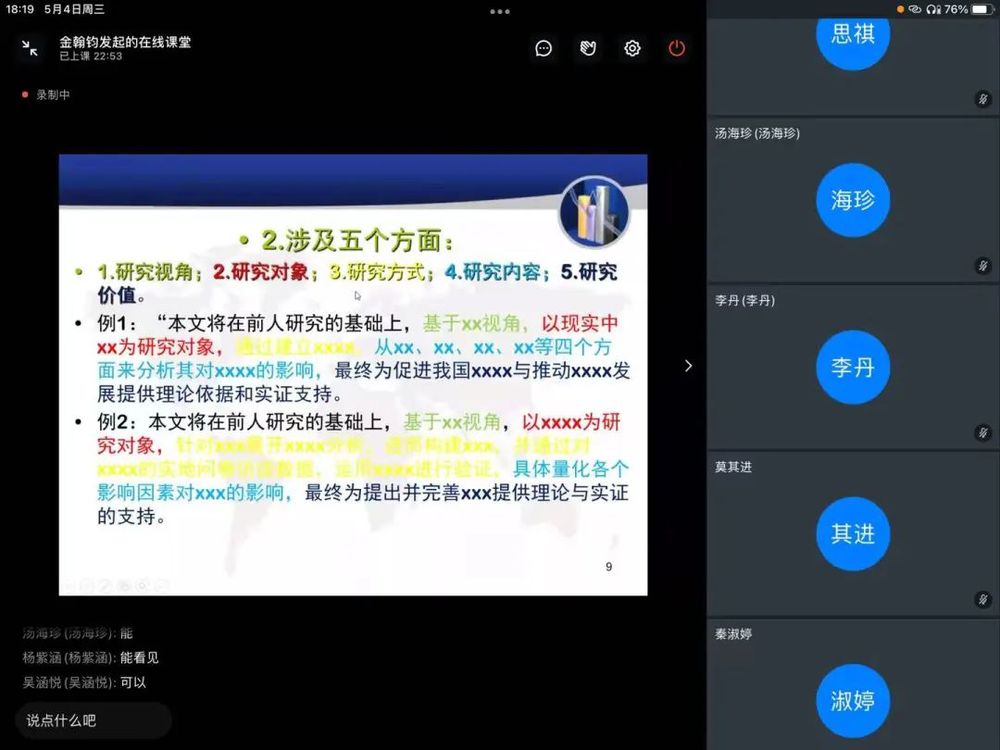 为提高同学们的学术论文写作能力,提升同学们学术研究的能力,我院于5月4日晚举办了“如何撰写文献综述”的线上专题讲座,日语系金翰钧老师主讲。