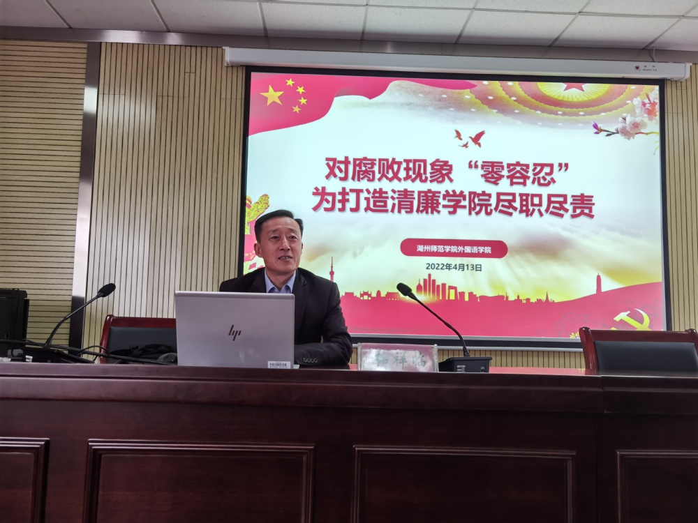 4月13日,我院党委书记韩祥临为全院教职工上了一堂题为《对腐败现象“零容忍”,为打造清廉学院尽职尽责》的廉政党课。本次党课主要分析了当前反腐败的形势与任务,并结合各类高校腐败案例,教育师生员工保持清正廉洁。最后,韩祥临指出,学院上下将进一步加强对党风廉政建设制度和要求的学习,提高廉政意识和防腐能力,坚持和完善民主集中制,强化监督,坚持批评与自我批评,不断提高政治鉴别力和政治执行力,提升管理队伍的管理效率及服务水平,规范内部制度设置,并围绕“清廉校园”建设,打造清廉学院,对腐败现象“零容忍”。