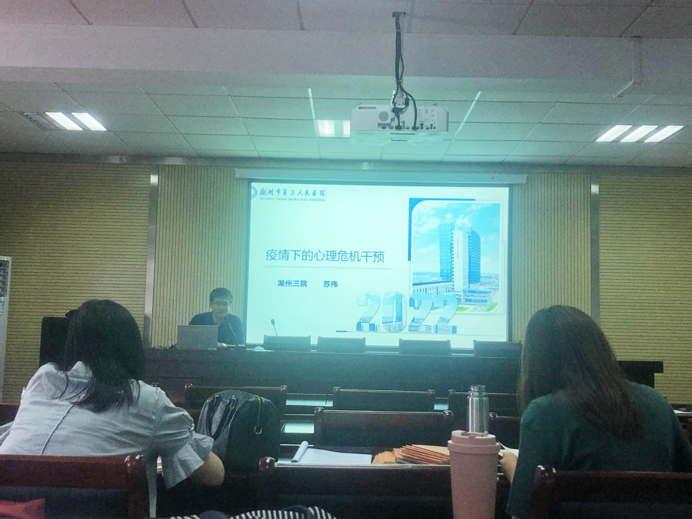 随后的心理教育工作培训由湖州市第三人民医院普通精神科病区主任苏伟医生主讲。苏伟医生以《疫情下的心理危机》干预为主题进行培训。他首先带领班主任老师回顾了一些以往的重大公共安全事件以及对公众心理的影响。随后,苏医生从心理危机的概念,心理危机产生时的个体表现,心理危机干预的目的,常用的心理危机干预技术等方面进行具体阐述。苏医生用丰富的临床经验,结合耳熟能详的故事、鲜活生动的案例,深入浅出地为班主任老师介绍了心理危机干预的基本知识,重点详细讲解了实用的心理危机干预技术,还为班主任提供了调节心理状态的实用建议。