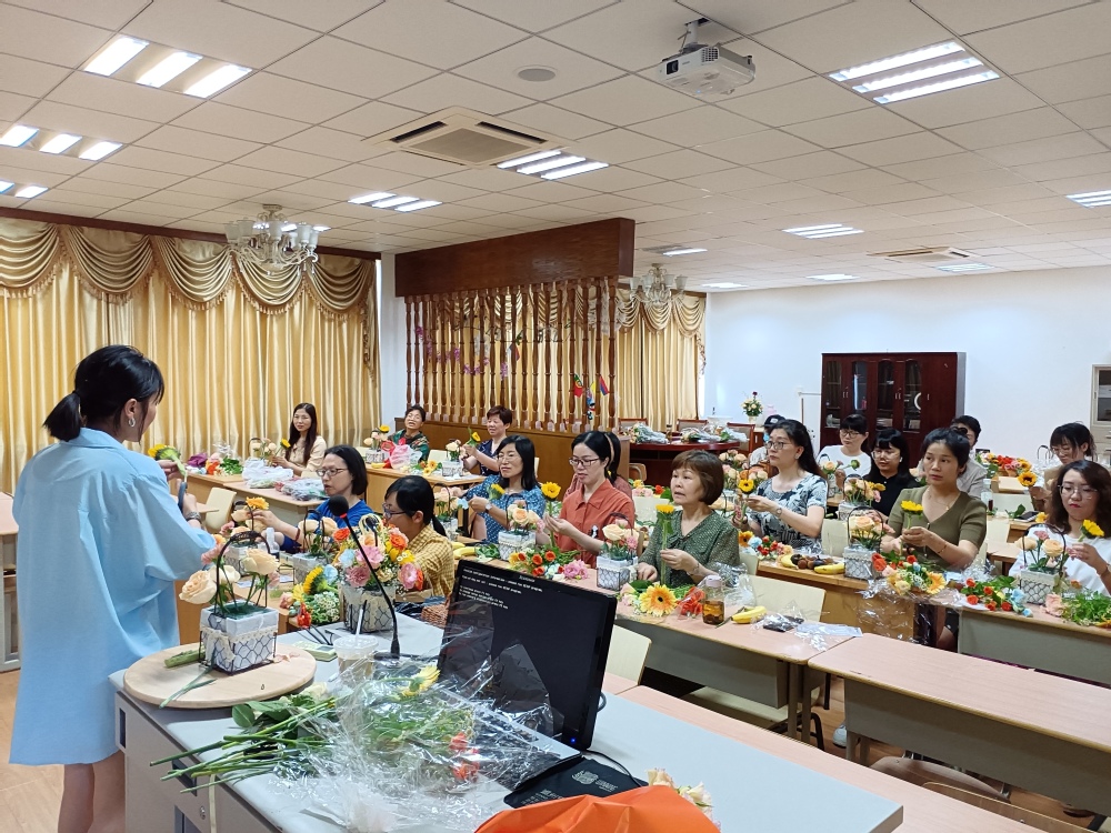 为丰富女教工的业余文化,外国语学院分工会于6月8日举办了“熏陶艺术,品味生活”插花艺术活动。