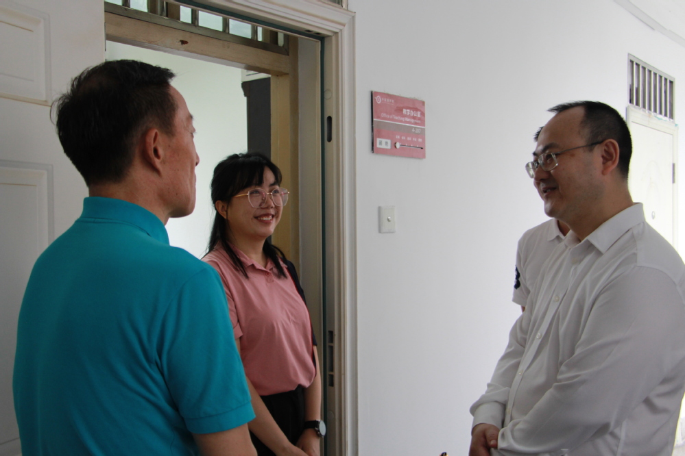 在走访过程中,任伟海一行走进部分教师办公室,亲切交谈新学期的工作和生活安排,详细询问了他们在科研、教学、行政工作方面的情况。看到我院开学教职员工精神饱满、各项工作平稳有序,任伟海给予了充分肯定,他祝福大家在新学期身体健康、工作愉快,并勉励大家凝心聚力,积极作为,为创建大学作出贡献。