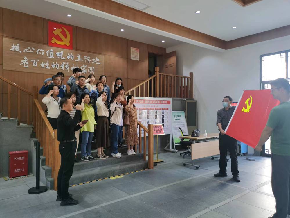 除了参观学习,党员们还在余村重温了入党誓词。面对鲜红的党旗,庄严地重温入党时的满腔热情和崇高追求以及作为党员的神圣使命和责任。