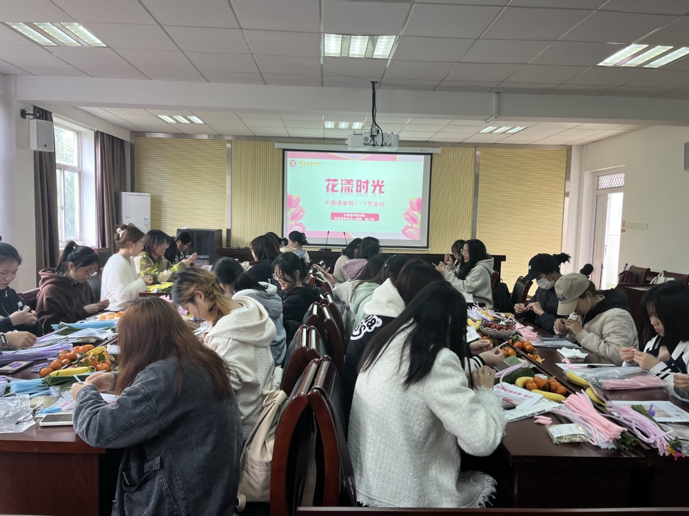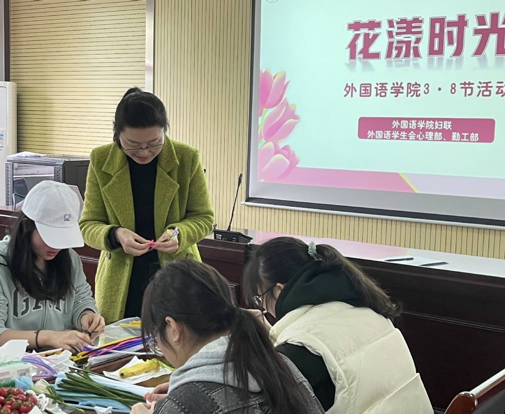 为庆祝第113个“三·八”国际妇女节,3月8日下午,外国语学院妇联、学工办组织部分女大学生和女教师开展了主题为“花漾时光”的庆祝“三·八节”主题活动。表达了学院对女生的人文关怀,也加强了美育教育和发展性资助。