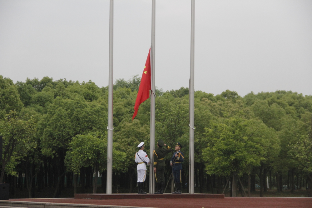 伴随着国旗护卫队整齐的步伐,全体师生望着五星红旗冉冉升起。升旗仪式结束后,全体师生为5·12汶川大地震的殉难者默哀三分钟。