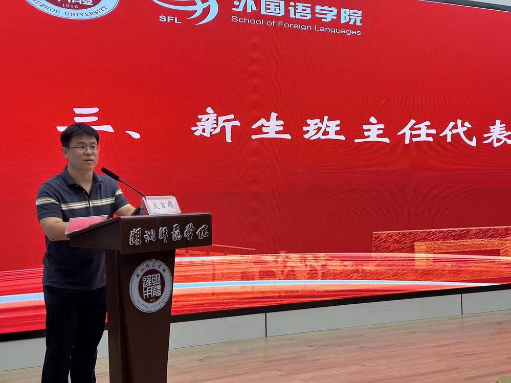 最后,外国语学院院长初良龙对2023级新生表示热烈欢迎并送上了真挚的祝福,并以我院优秀校友为例,勉励新生们在大学这个全新的起点,打下扎实的专业基础,把握好自己的目标,持续完善自我,开拓眼界,丰富阅历,与时代同步,与社会同步,保持定力,以持续的学习的步伐和节奏,理解当代中国,讲好中国故事。