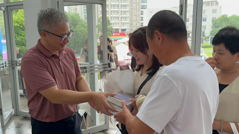 另外,学院还为新生准备了定制帆布袋、卡套、单词记忆本等入学纪念品,同时,在学院迎新现场设置“学生证相框”打卡,引得学生家长和学生纷纷驻足合影留念;设置学院特色活动“心愿种子墙”,墙上贴上了204枚鲜花种子,寓意204位新生含苞待放的梦想在湖师外院播下种子。每名新生可以取下一枚属于自己的“心愿种子”并在墙上写下自己的心愿。新生带回自己的心愿种子,播种后感受自己的心愿“萌发”;此外,报到当天也是学院一位新生的生日,学院为其送上了生日惊喜,在场师生唱起生日歌,现场气氛温馨,其乐融融。