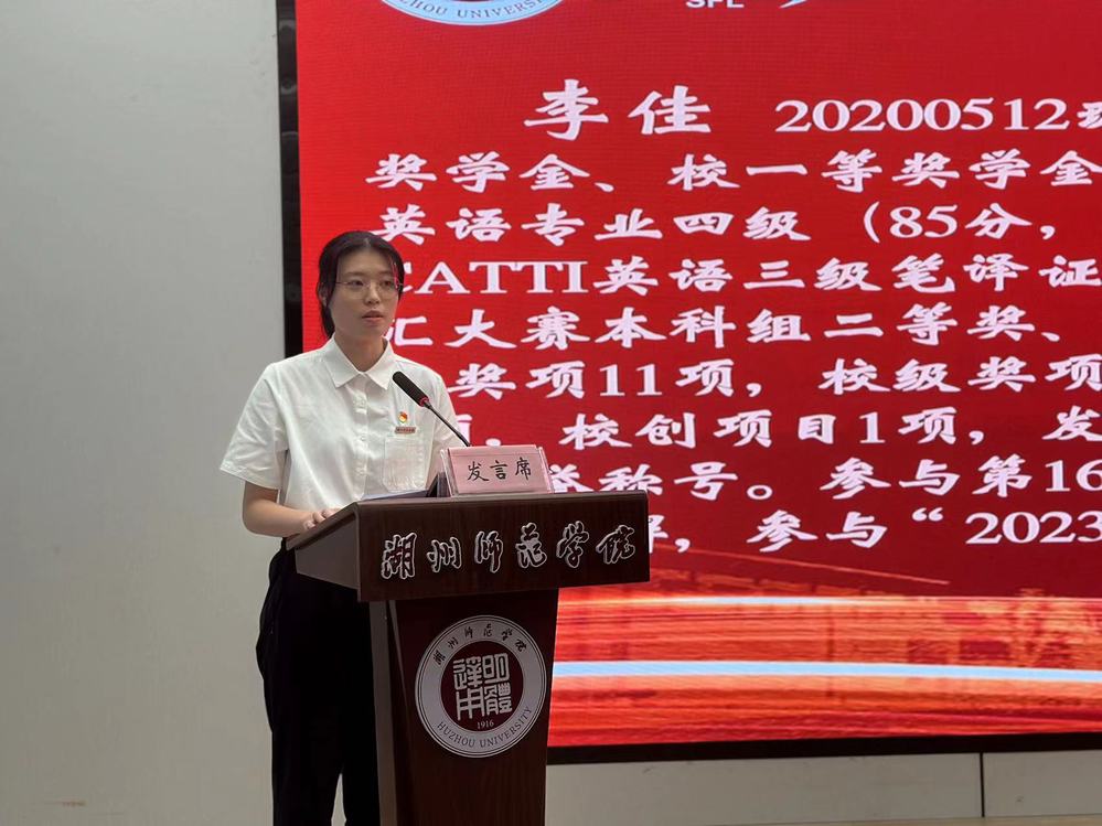 2020级英语(师范)专业学生李佳从自身经历出发,鼓励新生们要勇于探索自我,学会自主合理规划,积极参与各种实践活动,在大学四年的中,靠点滴的积累,争做担当民族复兴大任的新时代青年,成为讲好中国故事的外语人,成为面向世界,具有世界眼光和跨文化交际能力的大格局、大视野的外语人。