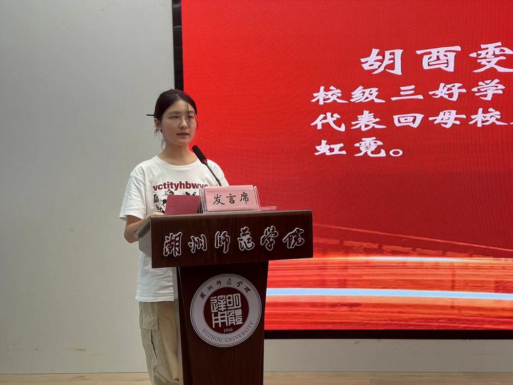 2023级新生代表胡酉雯在发言中分享了作为一名新生的思考和建议。她认为初入大学生活,要想在未来生活中不负韶华,就要明德立志,修身自律。找准自己的定位,培养爱国爱校的情怀,涵养优秀的品德,塑造健康的人格,坚持严于律己,不让自己虚度光阴、辜负韶华。