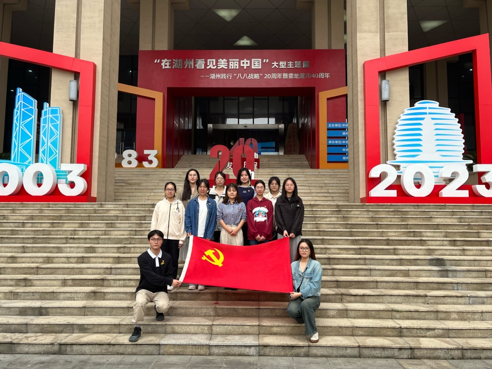 感悟思想伟力,凝聚奋进力量。为深入学习贯彻习近平新时代中国特色社会主义思想,持续全面深刻认识“八八战略”的思想内涵。10月27日,我院学生党支部开展“循迹溯源学思想促践行”主题党日活动,学生党员赴湖州市档案馆参观“在湖州看见美丽中国”——湖州践行“八八战略”20周年暨撤地建市40周年大型主题展。