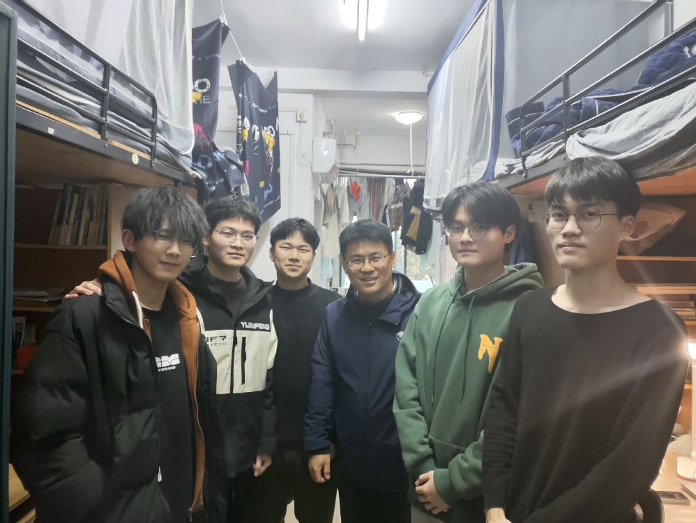 在交流过程中,各位老师叮嘱同学一定要注意用电安全、防火防盗,小心电信诈骗,保管好自己的贵重物品。走访的最后,各位老师为同学送上真挚祝福,祝愿所有学生,这一学期等能学有所成、收获满满。