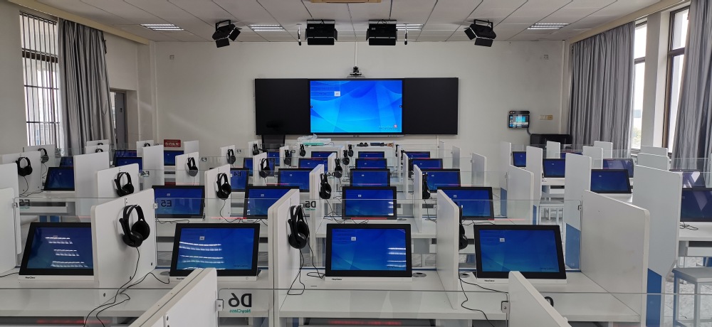 外国语学院外语语言实验教学中心始建于2002年。中心现有固定资产1242台件,总值315.28万元;实验室使用面积1127.21平方米,主要有数字化同声传译实训室、数字化口语技能实训室、视听技能实训室等。