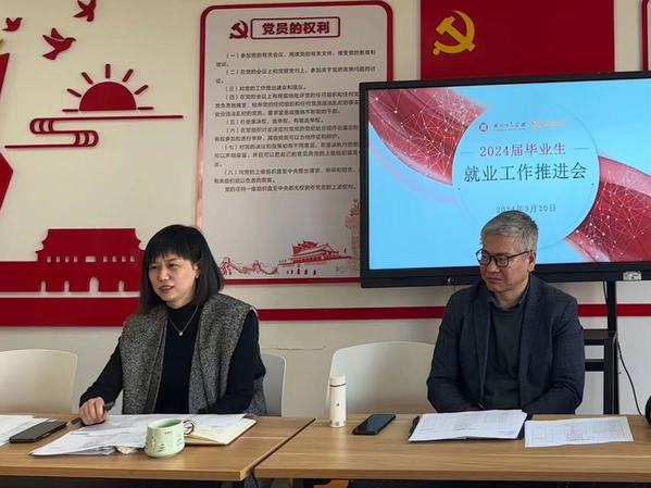 为进一步加强外国语学院2024届毕业生就业工作,提高毕业生就业质量和就业率,3月20日,我院于4-312党员之家召开2024届毕业生就业工作推进会。本次会议旨在全面分析当前就业形势,为毕业班提供有效的就业指导,促进毕业生高质量就业。