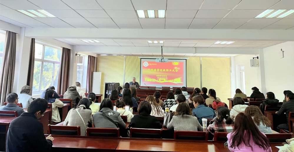 院长初良龙对学院2024年度工作进行了全面部署,动员学院上下团结奋进,全力以赴做好优化师资生态、夯实硕士点基础、完善学术组织、提升优米app官方下载入口手机版实效、做好学院文化建设五项重点工作,做实推进公共外语教学提质增效、打造外语专业特色品牌、助推学生成长成才、优化人才队伍结构、激发教师发展内生动力、增强社会服务能力、拓宽对外交流合作渠道等七项主要工作,希望全院教师继续发挥爱岗敬业、严谨治学的良好传统,实现个人专业发展和学院各项事业推进的双向奔赴,建设和共享和谐幸福外院。