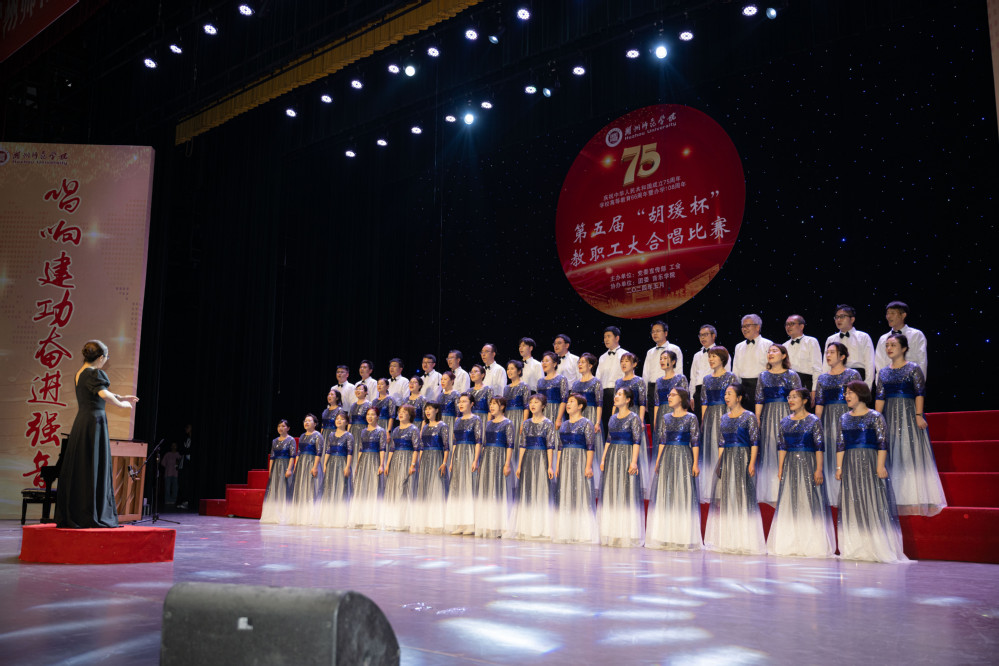 本次比赛共吸引了各分工会共14支代表队参加,音乐学院、离退休、附属第一人民医院、附属中心医院合唱团带来了精彩表演。我院分工会积极组织老师组队参赛。老师们克服工作、家庭各方困难,抽出休息时间,在声乐老师指导下集中学,在业余时间用心练,从不会到会,从唱齐到唱美,经过前期两个多月的努力,合唱队全体老师在比赛现场以饱满的精神状态展示出最佳风采,最终以精彩表现荣获“二等奖”。