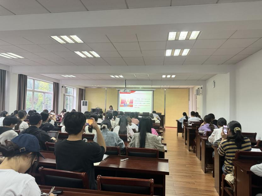 为加强入党积极分子理想信念,更好地学习“四史”,理解当代中国,坚定四个自信,5月22日晚,我院第二十八期党校第二讲党课开讲。本次党校课程由湖州学院马克思主义学院金建萍教授主讲,她以《新时代新征程中国共产党的中心任务》为题,从“四个一”来讲述中国共产党的中华民族伟大复兴中国梦。