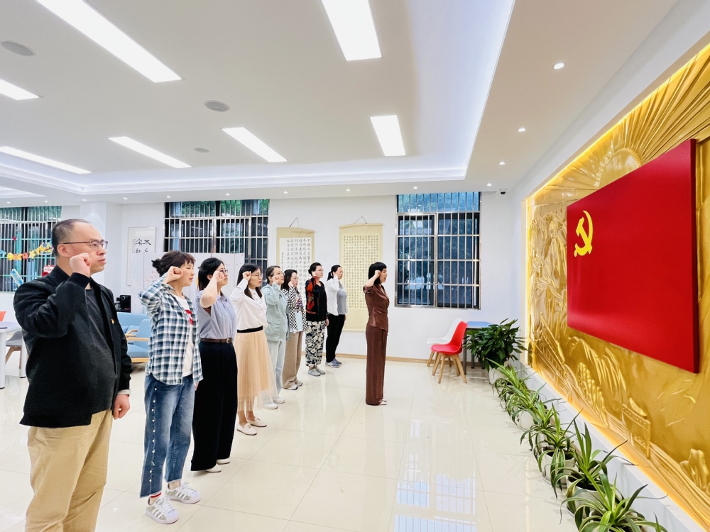 会前,党委书记叶莉带领党员参观党建展厅。跟随讲解员的脚步,回顾我校党建工作的发展历程和规划,学习我校在高质量党建统领下优米app官方下载入口手机版、优米官网首页下载、社会服务等各方面取得的办学成果,并带领党员一起重温入党誓词,进一步强化党员身份意识、宗旨意识、责任意识。