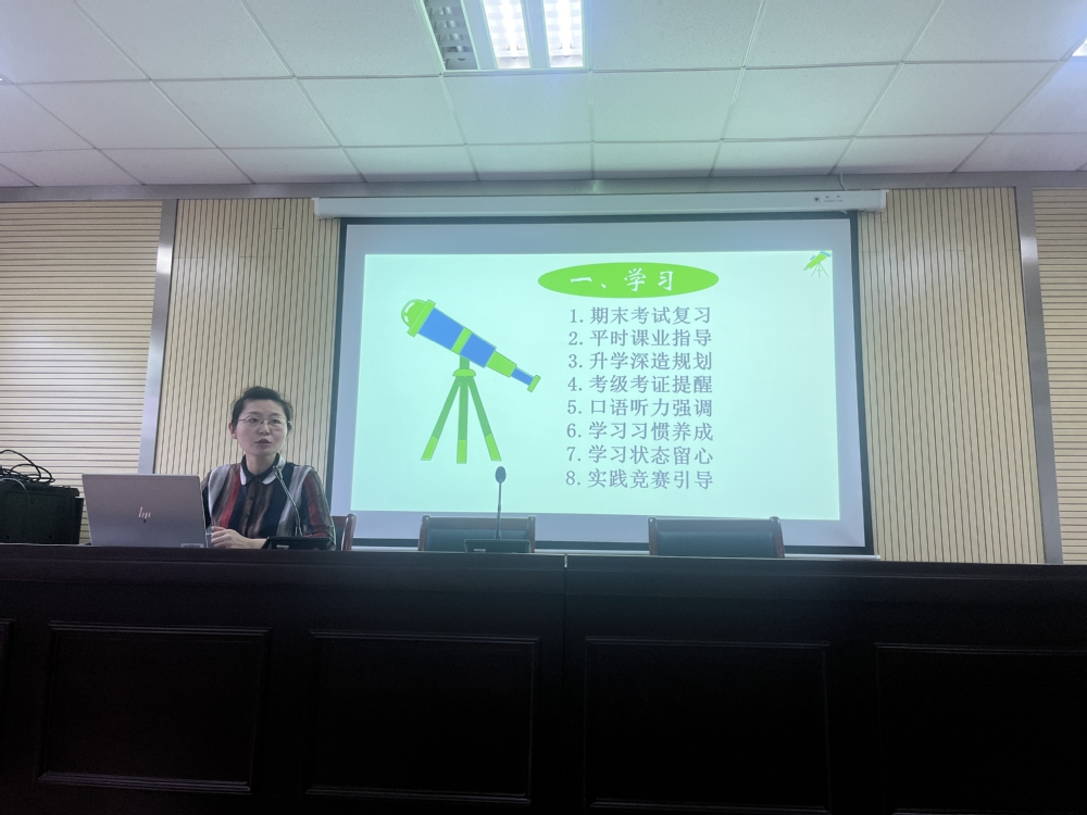 邹鑫布置了近期学生教育管理工作的重点内容,分别从学业指导、安全教育、期末思想动态研判、暑期留宿等方面作了详细的工作部署。她重点强调了学生安全教育工作的重要性。要求全体班主任要切实提高思想认识,守住安全底线,全方位聚力维护校园持续安全稳定。班主任要设身处地关心关爱学生,多开展谈心谈话,掌握学生的动态,重视学生需求与诉求,解决学生实际困难和问题。